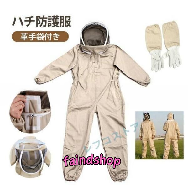 養蜂用 ハチ防護服 スズメ 蜂 防護服 スズメバチ駆除用 フェイスネット付き 通気性 つなぎ服 害虫駆除 虫よけ 作業服 保護装備 万全防護服 帽子 男女兼用