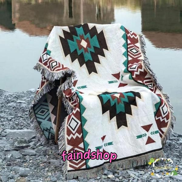 キャンプラグメキシカンブランケットラグマットおしゃれ厚手洗えるネイティブ柄北米ダイヤモンド柄民族柄毛布かわいいひざ掛け