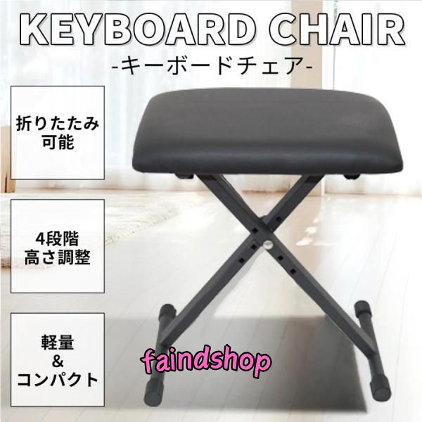 キーボードチェア ピアノ 椅子 折りたたみ 高さ調節 キーボードベンチ キーボードイス 折り畳み 4段階 ハイスツール クッション 合皮