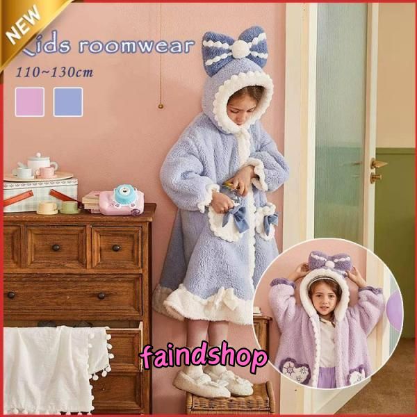 ルームウェア バスローブ キッズ パジャマ ガウン 寝巻き 着る毛布 部屋着 冬 女の子 子供パジャマ ロング ナイトウェア 前開き 長袖 もこもこ