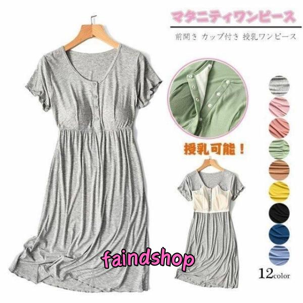 マタニティ ワンピース 前開き 授乳パジャマ 授乳服 マタニティウェア ルームウェア カップ付き 春 夏 妊婦 授乳 入院準備 産前 産後