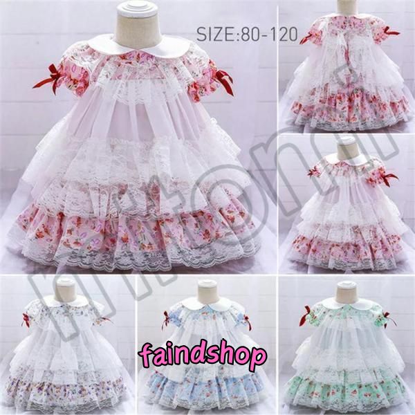 お姫様ドレス ワンピース スペイン風 子供服 ブルー ピンク グリーン ロリータワンピース 4colour 女の子 キッズワンピース princess dress