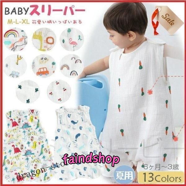 スリーパー 夏 キッズ 幼児 ガーゼ コットン 2重ガーゼ 4重ガーゼ 股スナップ付き 綿100% 部屋着 寝具 パジャマ 寝巻 通気性抜群