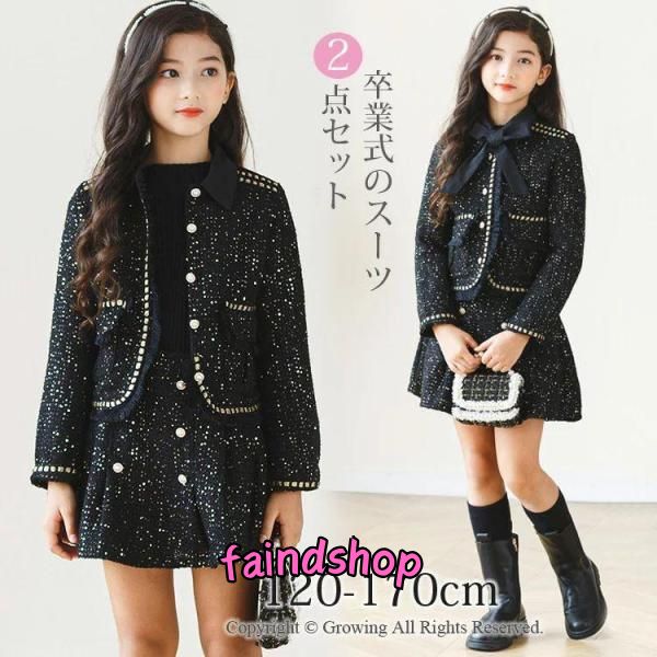 卒業式 入学式 女の子 スーツ キッズ フォーマル ツイードスーツ 小学生 120 130 140 150 160 170 卒園式 子供服 子供 ジュニア セットアップ 韓国服 発表会 結