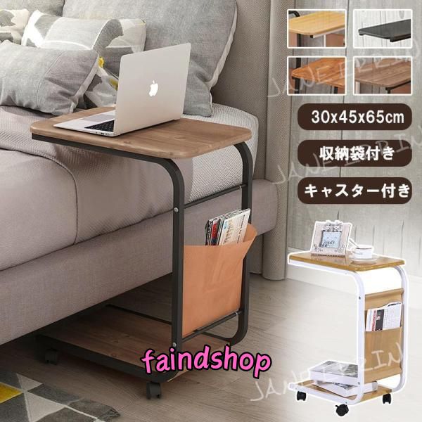 サイドテーブル ナイトテーブル ソファテーブル おしゃれ コ字型 北欧 キャスター付き 収納袋付き 小型 ベッドサイド 簡易デスク スリム おしゃれ