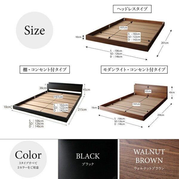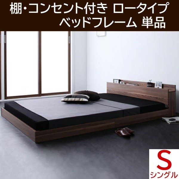 シングルベッド ロータイプ フレーム フロア ロー ベッド ヘッドボード 宮 棚 コンセント シンプル 床板仕様 シングル ベッドフレーム 送料無料 ※フレーム単品