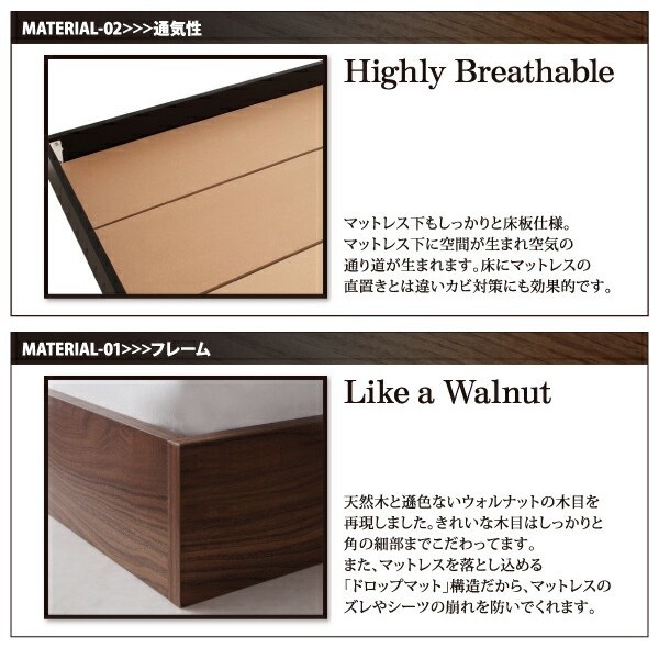 ロースタイル ヘッドボード付きフロアベッド。
