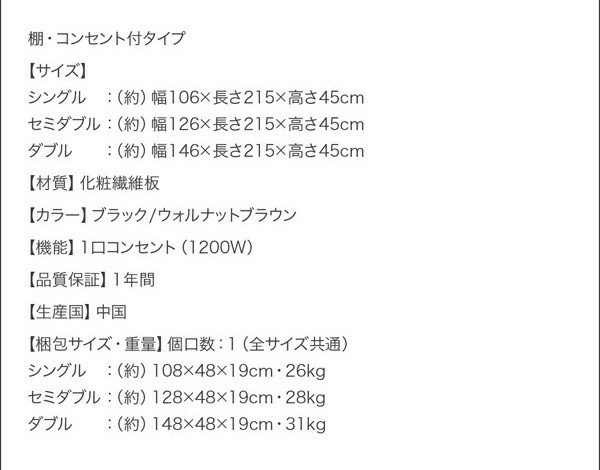 シンプルなデザイン、便利な1口コンセント付き。