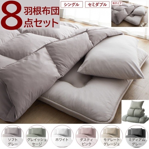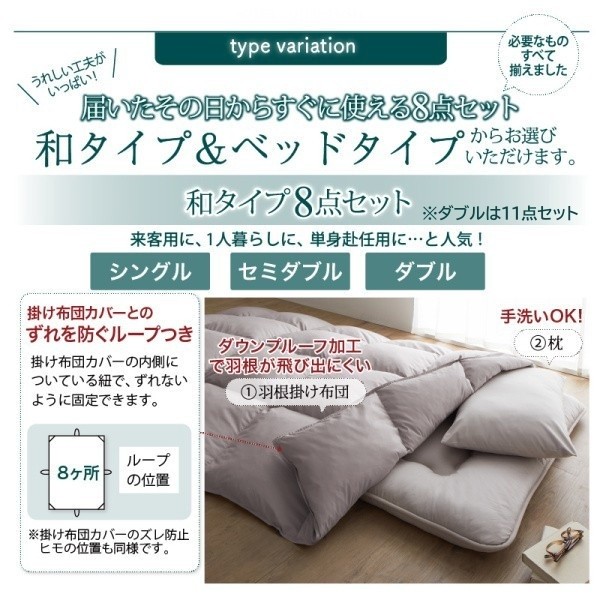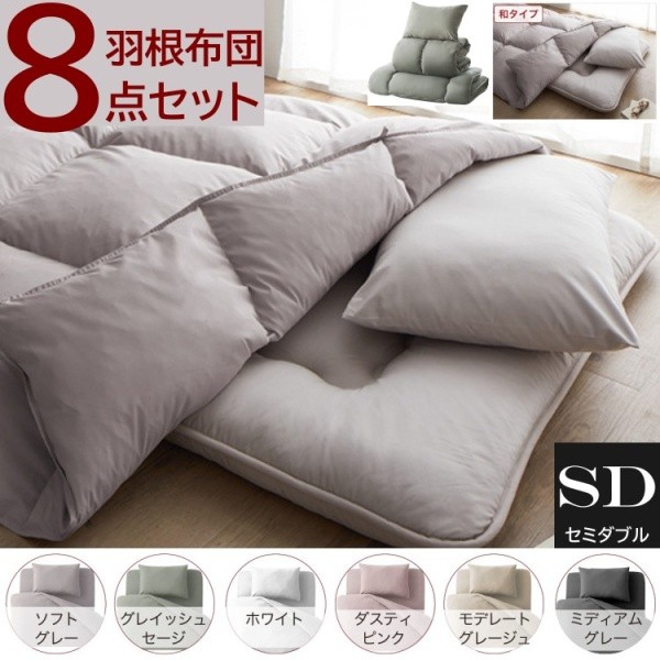 セミダブル 布団 セット 和タイプ 8点セット 無地カバー 和式 羽根布団 掛布団 敷布団 枕 カバー シーツ 収納ケース キルト加工 来客 寝具 布団セット 送料無料