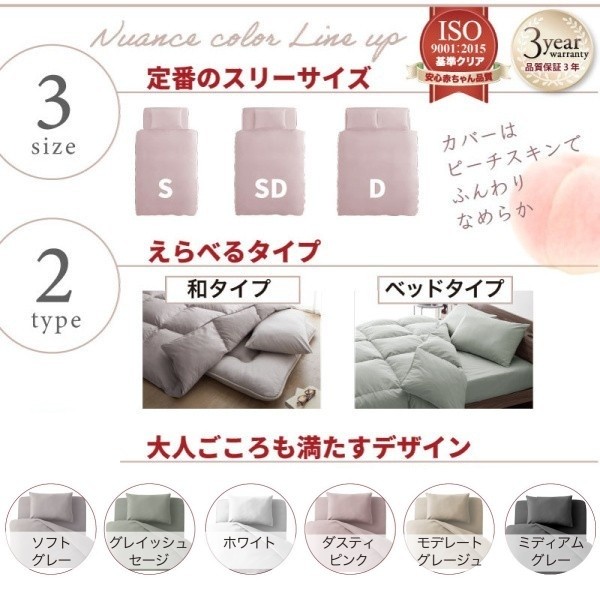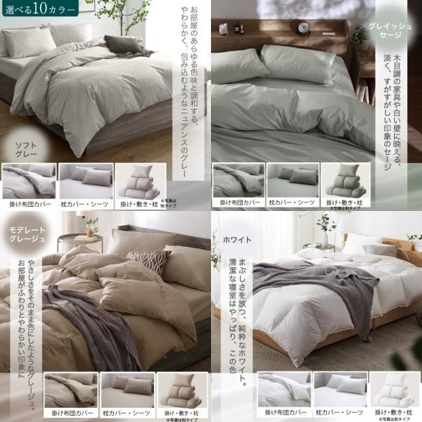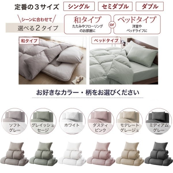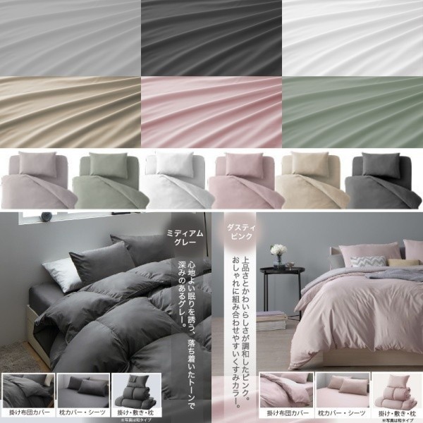 布団カバーも6色×3サイズ×2タイプの36種類から選べる