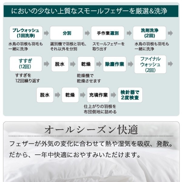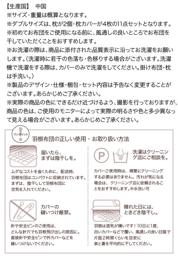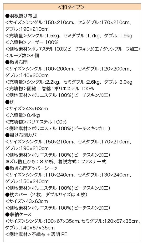 側地素材:ポリエステル100%(ピーチスキン加工/ダウンプルーフ加工)