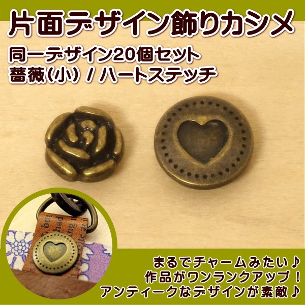 片面カシメ デザインカシメ 飾りカシメ20個セット 薔薇小 または ハートステッチ