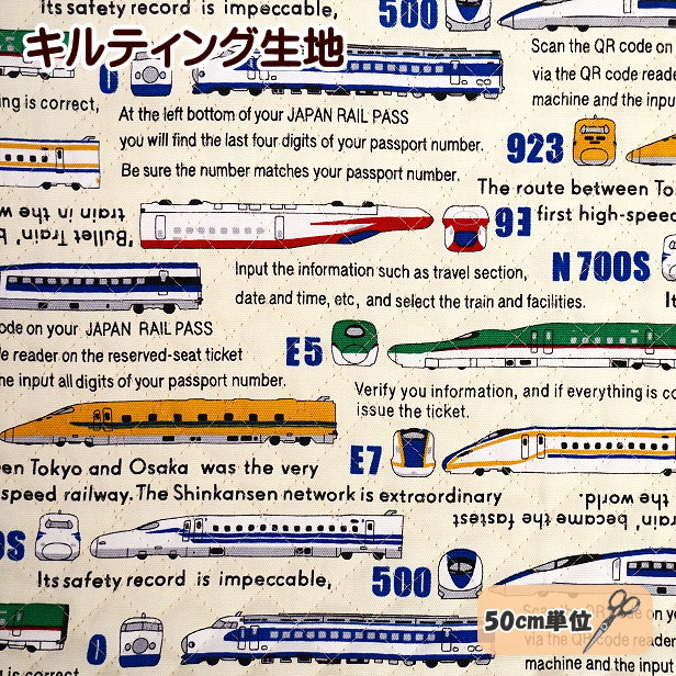 キルティング 生地 車両名 新幹線 500系 0系 923系 横向き 英文字 トレイン かっこいい 乗り物 列車 英字 電車 日本製 手作り 手芸 通園 通学 入園 入学 爆買