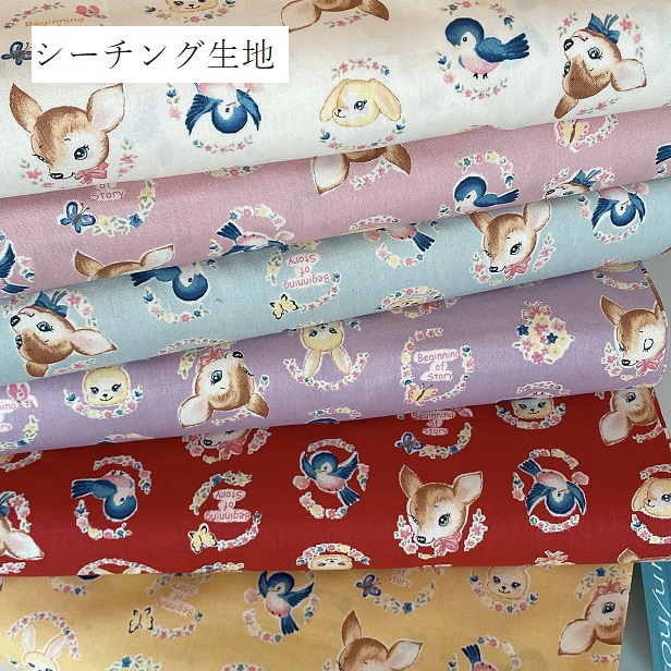 生地 シーチング シーチング生地 un/no レトロバンビ 青い小鳥 小花 うさぎ 綿100% 布 手芸 レトロ バンビ アニマル かわいい
