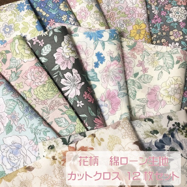 メール便送料無料 福袋 綿ローン生地 カットクロス お試しセット 大判 50cm×50cm 12枚 手芸 小花柄 マスク作り ハンドメイドマスク