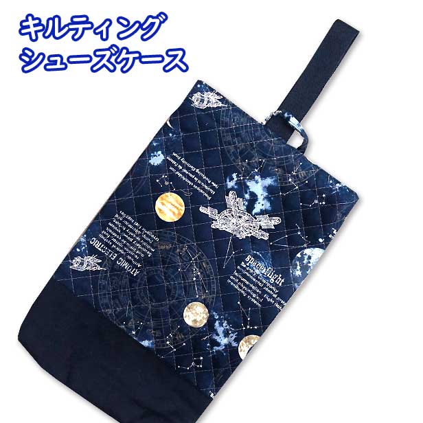 キルト キルティング シューズ入れ 切替付き 宇宙 星座 羅針盤 完成品 男の子 シューズケース 上履き入れ 小学校 入園入学 通園通学