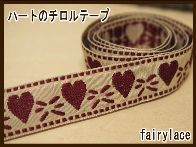 SALE!ハート柄のチロリアンテープ、チロルテープ(カントリーハートチロル・ダークレッド・ハート横)