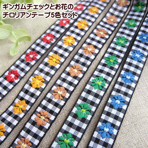 限定販売! ギンガムチェックとお花のチロリアンテープ5色セット  | 可愛いギンガムチェックとお花のチロリアンテープ♪ 小物やお洋服などの可愛いポイントに! 使いやすいサイズも嬉しい♪ 幅約13mm前後。 各色1メートルずつ 合計5メートル入ってます! ※入荷時期により多少色が変わる場合があります。 ●海外製品のため、品質が一定ではございません。 予めご理解いただいた上でご注文願います。 海外製品にご不安がある場合はご注文をお控え願います。  | |