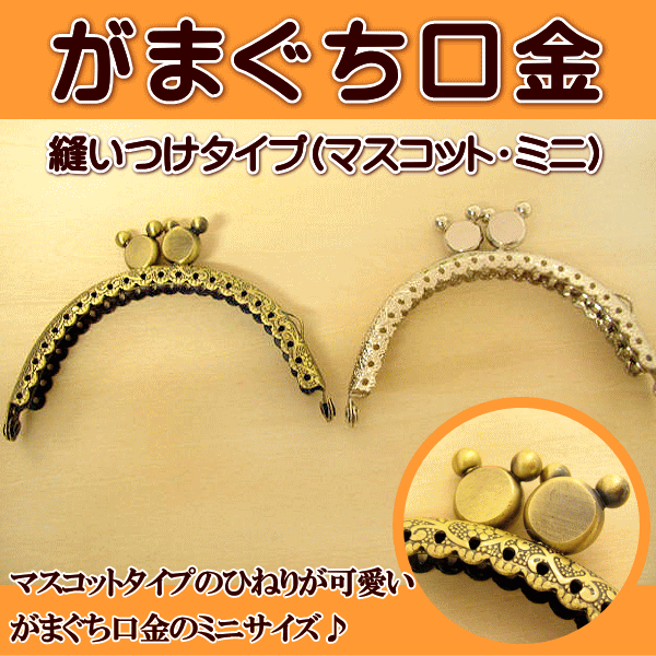 マスコットタイプのひねり部分が可愛い縫いつけタイプのがま口金。
