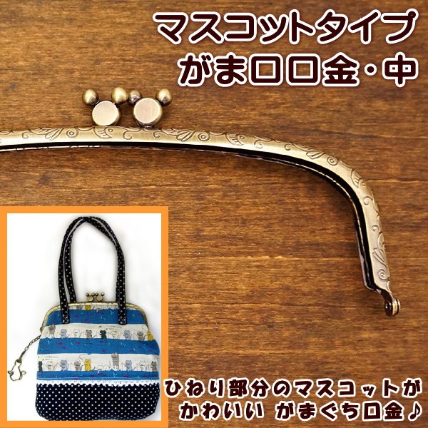 がま口 口金 中 18.0cm マスコットタイプ 丸 カン付き 差し込み 手芸 がまぐち 口金