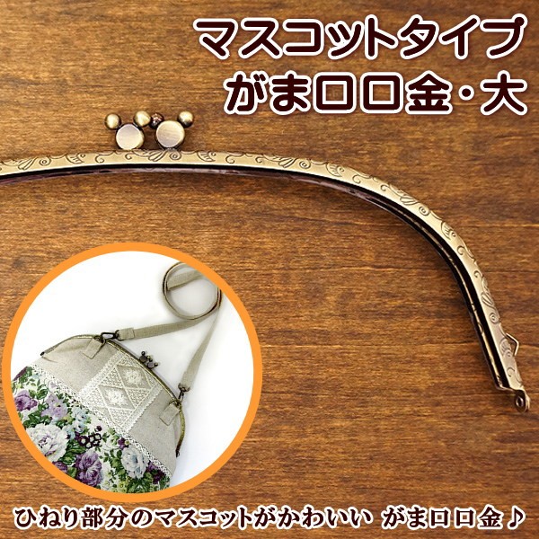 手芸 がま口 口金 大 25.0cm マスコットタイプ 丸 カン付き 差し込みタイプ がま口口金