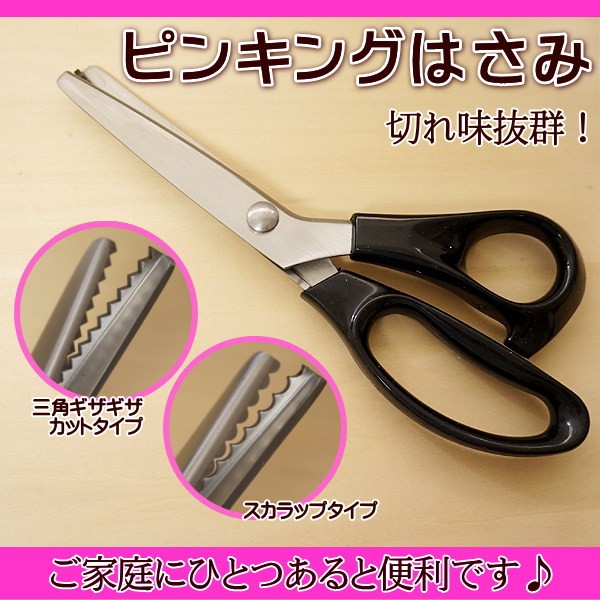 | 訳あり特価! ピンキングはさみ ハサミ ![]() 切れ味抜群のピンキングはさみ。 三角のギザギザカットタイプと スカラップタイプの2種類。 ![]() 三角タイプ ![]() スカラップタイプ 女性の手にも持ちやすい23cmサイズ ![]() ![]() さくさくカットができる切れ味の良さ! ちょっと訳あって 1本1000円(税別) 日本製と遜色のない切れ味なのに こんなに破格なのは… ![]() さび止めオイルが残っています。 お使いになる前にしっかり ふき取ってください。 スカラップタイプ ![]() 三角タイプ ![]() ![]() ![]() 箱がメール便の規定の厚みを超えるため、 箱なしでの配送(箱はお送りしません)に ご了承いただけましたら、 メール便配送が可能です。
