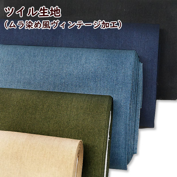 ツイル生地 20sツイル デニム風 ムラ染め風 ヴィンテージ加工 無地 手芸 生地 綿100% 綾織り 20番手