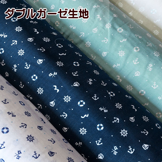 柄リニューアル!安心の国産! コットン100%国産ガーゼ生地。シンプルでかわいいマリン柄♪ベビーのスタイやパジャマ、マスク作りなどにも♪