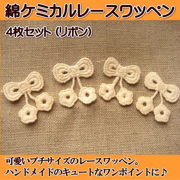 手芸 綿 ケミカル レース ワッペン (リボン) 4枚セット