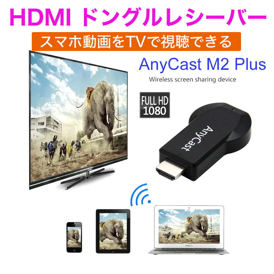 HDMI ドングルレシーバー AnyCast M2 Plus WiFi ミラーリング テレビ iPhone Android Windows MAC 無線 YouTube