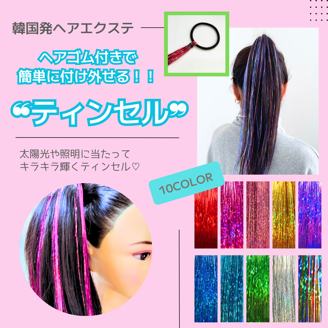 ヘアティンセル エクステ ヘアゴム付き ダンスアクセ ダンス 簡単ヘアアレンジ おしゃれ ダンス キラキラ ラメ 結婚式 パーティー お祭り イベント