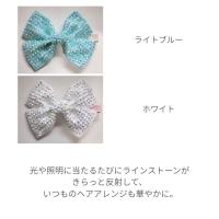 リボンデザインで可愛さ満点!ラインストーンのきらめきでちょっぴり大人っぽさもプラス。