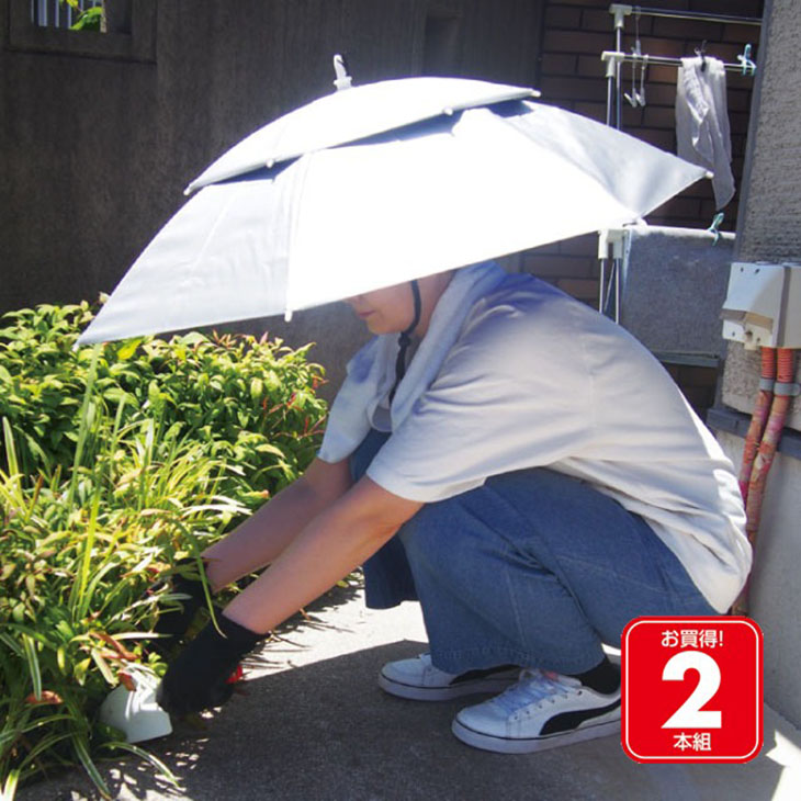 かぶる傘 2本組 日傘 屋外作業 園芸 ガーデニング 農作業 かぶる 帽子型