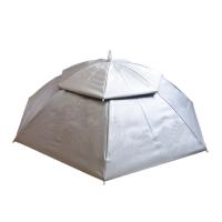 両手が使え作業がはかどる帽子型のかぶる傘。あご部分に紐が付いている帽子のようにかぶれるタイプの日傘です。チルバハットや竹笠・あじろ笠をお探しの方にもおすすめしたい「かぶる」帽子タイプの日傘です。傘を持つ必要がないので屋外の作業に最適。約270gと軽量です。傘の上部は二重構造で、すき間から風が抜け通気性がありムレにくい仕様です。屋外での作業、園芸用、農作業、DIY、車の洗車、除草作業、冬は除雪作業用におすすめです。