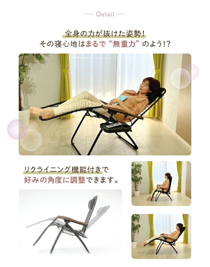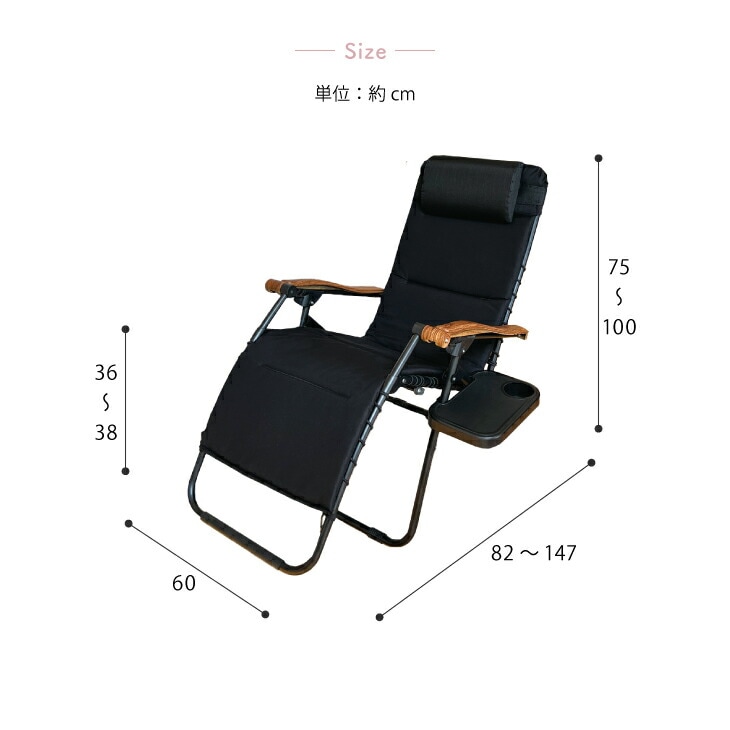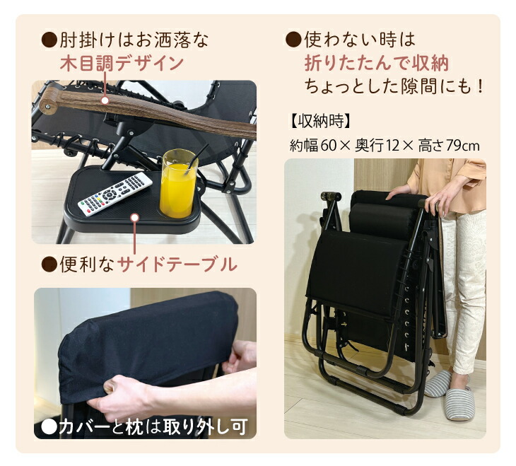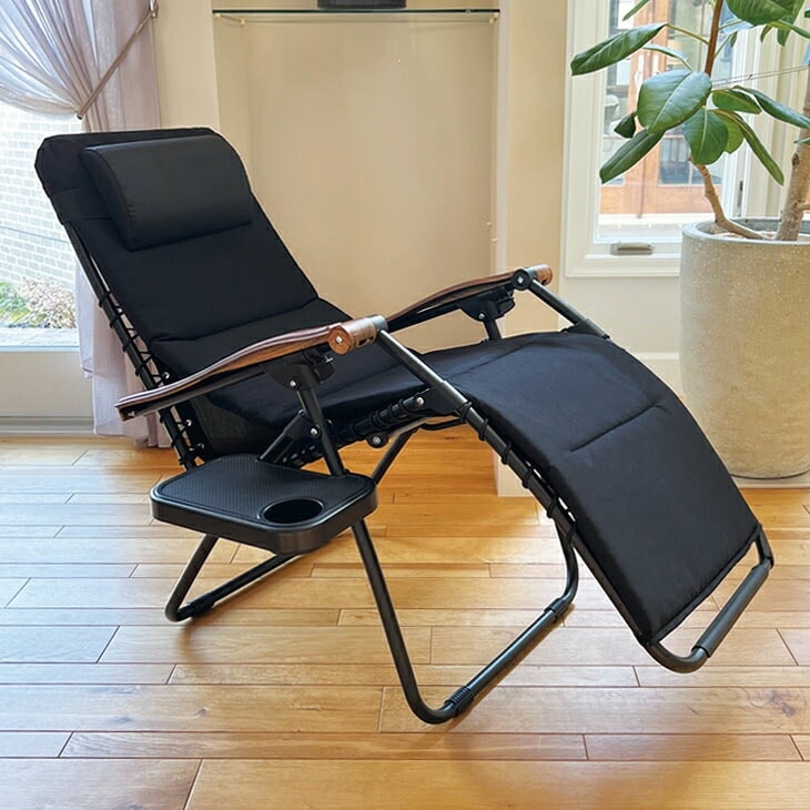 ハンモック風 無重力チェア 室内 リクライニングチェア 一人用 リラックスチェア 肘付き ヘッドレスト付き 折りたたみ収納 ブラック 完成品