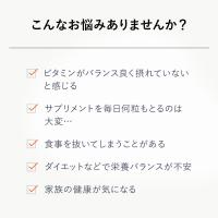 食事では不足しがちなビタミン1日分*をバランス良く補えます。さらに、ビタミンをサポートする「藤茶ポリフェノール」と「コエンザイムQ10」を配合。ただ不足を補うだけでなく、効率まで考えたサプリメントです。