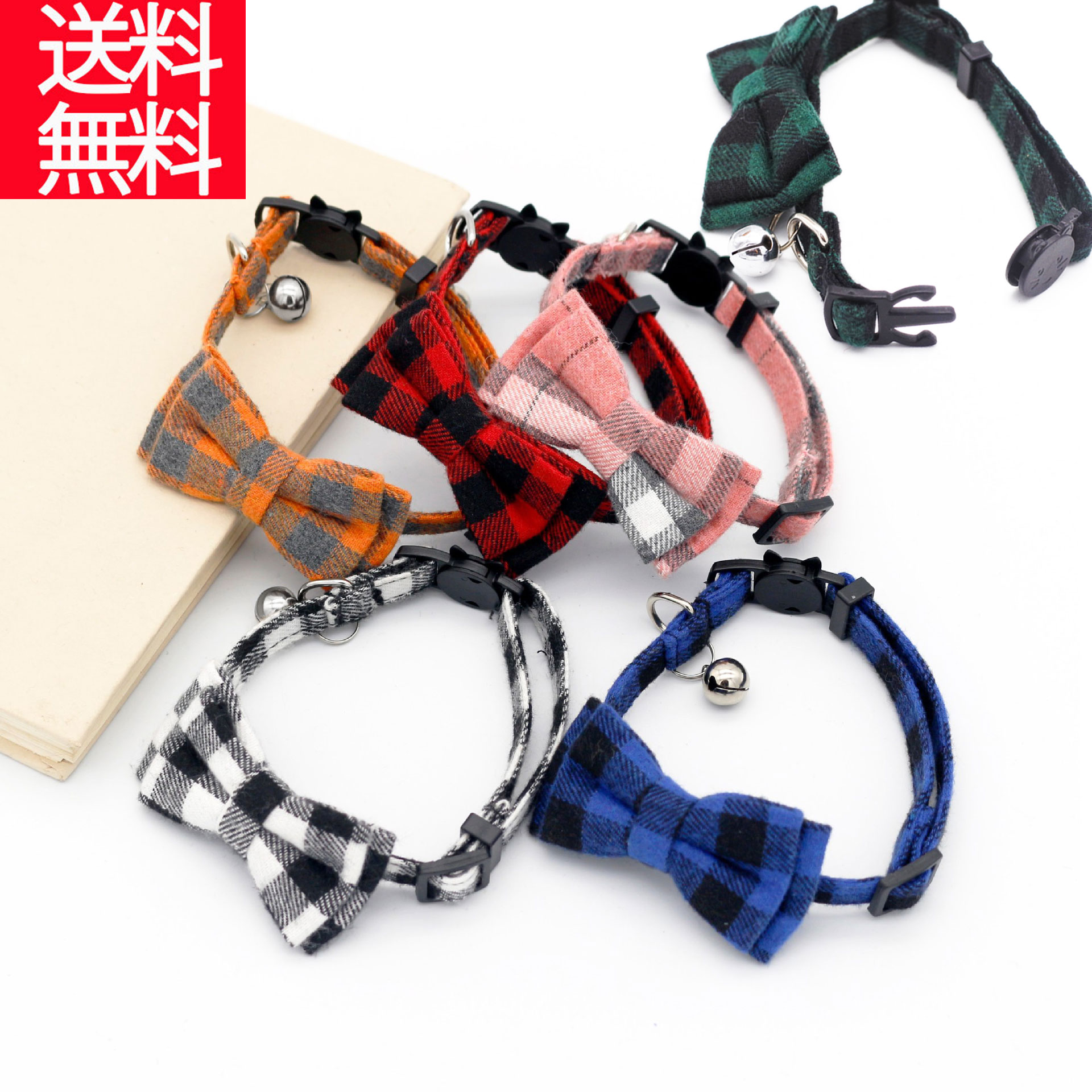 猫 ねこ 猫用 首輪 ペット 可愛い リボン セーフティバックル 安全 外れる チェック柄 鈴 軽い 軽量 キャット 猫用品 ネコ ペット用品