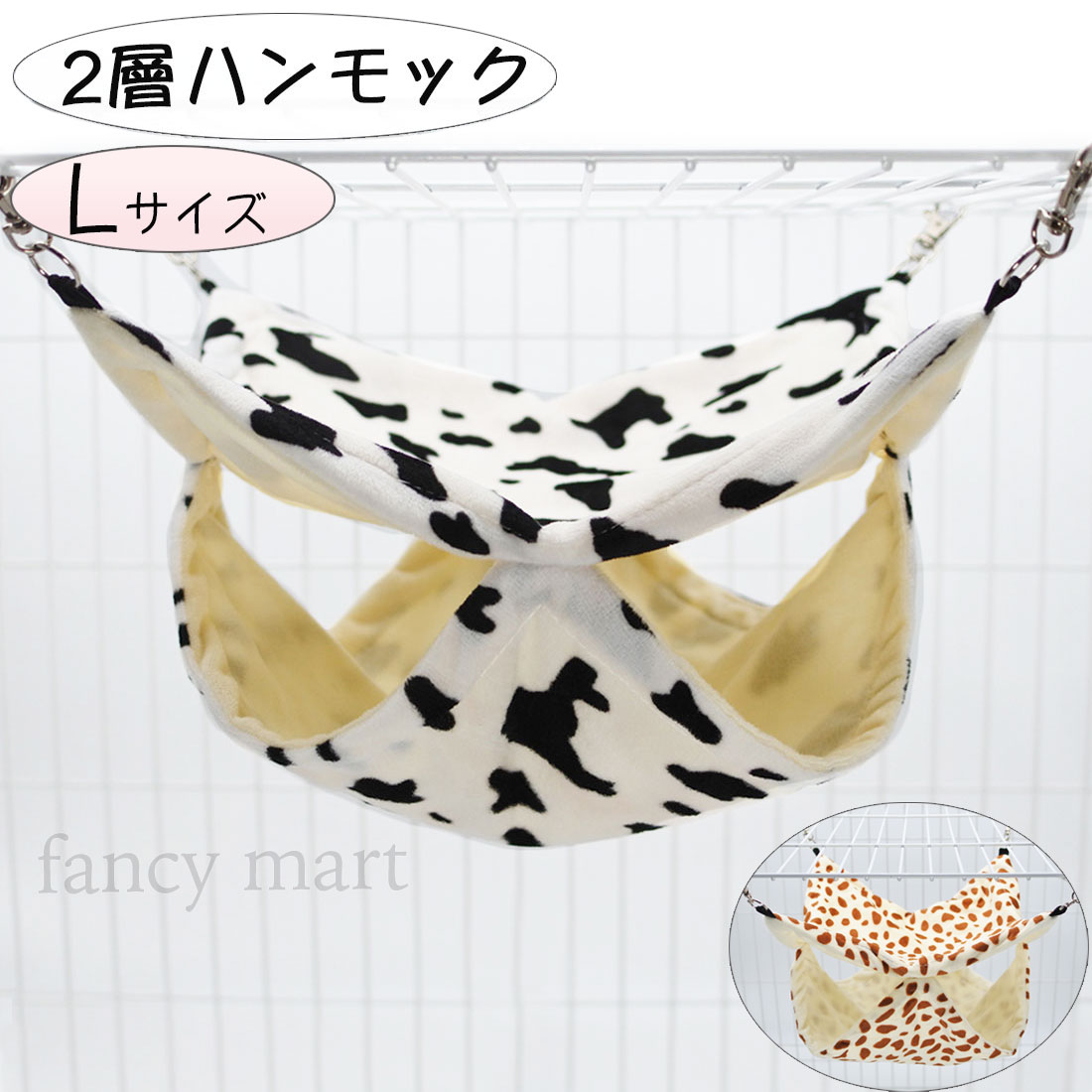 小動物用 ハンモック 薄め 吊るす マット 遊び場 2層 隠れ家 ハウス ハムスター リス モモンガ モルモット アニマル柄 Lサイズ