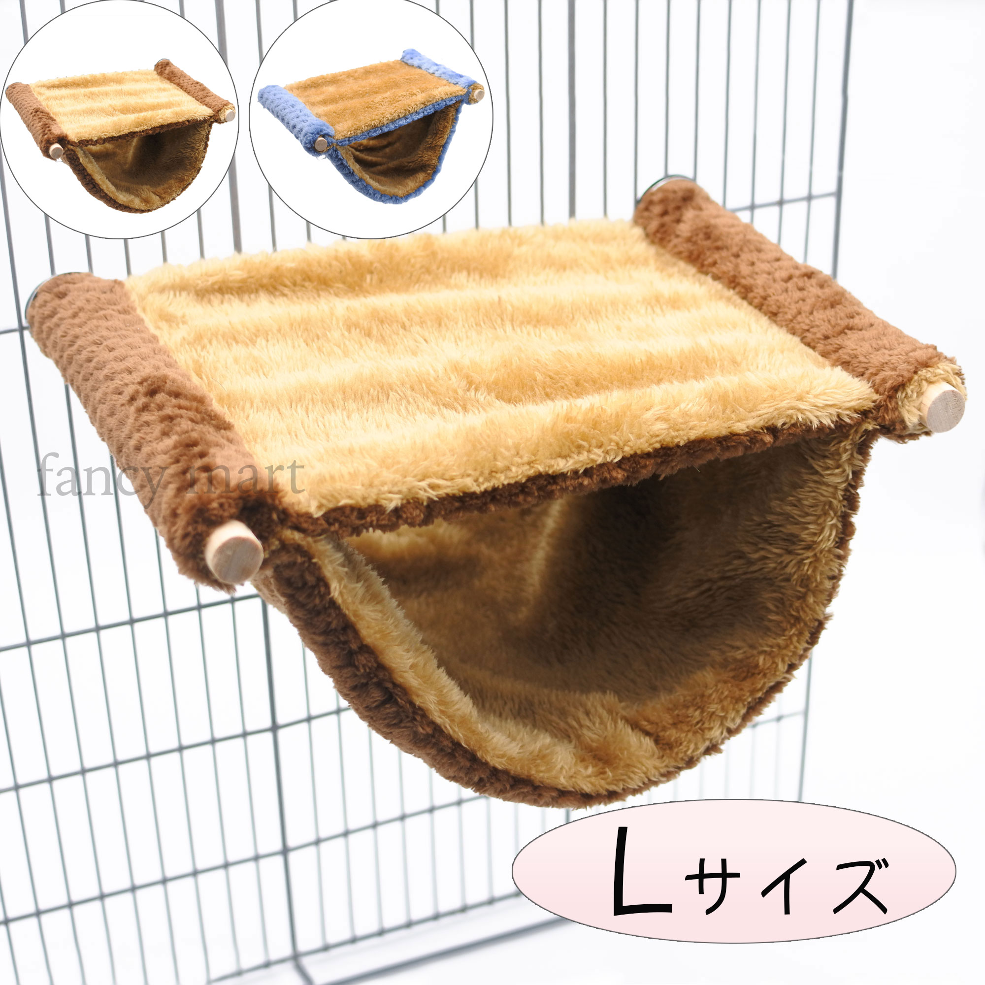 2本の軸棒をケージにしっかり取り付けハンモックとして、床に置いてクッション・隠れ家にも使えます。