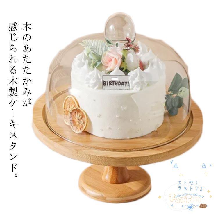 ケーキスタンド 20cm 小 木製 ケーキトレー ウッドケーキスタンド ガラス蓋付き ナチュラル シンプル おしゃれ 製菓 キッチン カフェ ティータ