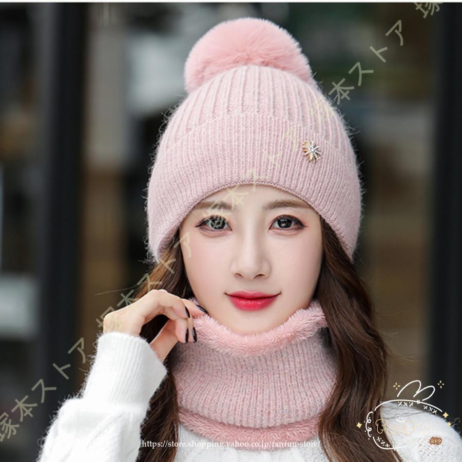 秋冬 レディース ニット帽 帽子 スヌード ニットキャップ ネックウォーマーセット 暖かい 裏ボア 裏起毛 暖かい 秋用 冬用 防寒対策 防風 防寒 ポンポン 2点セット 小顔効果 大人 可愛い