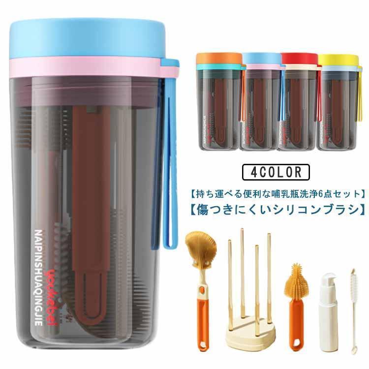 収納カップ付き 哺乳瓶ブラシ 水切りスタンド セット トラベル ポータブル シリコン ボトルブラシ 乳首ブラシ ストローブラシ 乾燥スタンド 消毒