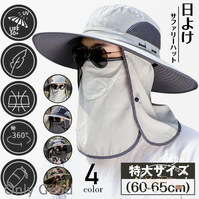 サファリハット メンズ 大きいザイズ 帽子 特大きいサイズ60-65cm ツバ広げ 360度全方位UVカット UPF50 つば広 UVカット帽子 紫外線対策 日除け 通気速乾