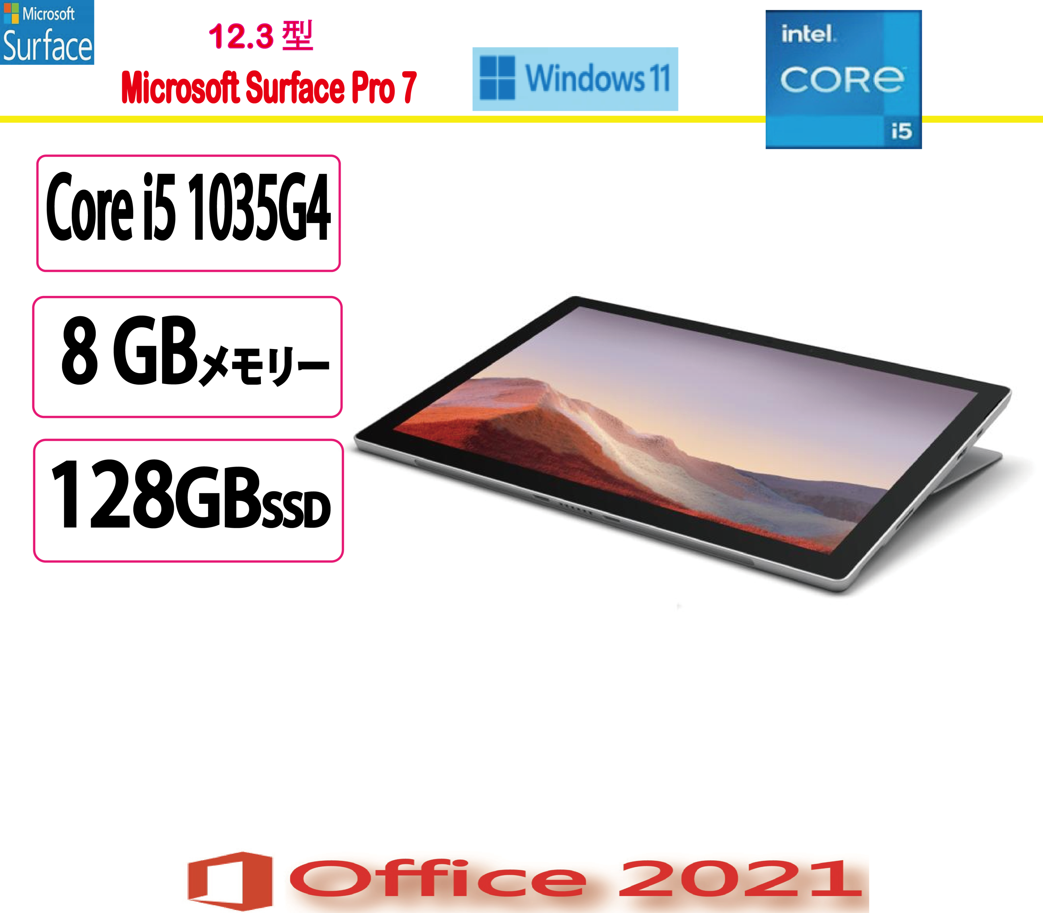 マイクロソフト(Microsoft) ノートパソコン マイクロソフト Surface Pro 7/Core i5/128GB/メモリ 8Gモデル/MS Office 2021/アウトレット品/展示
