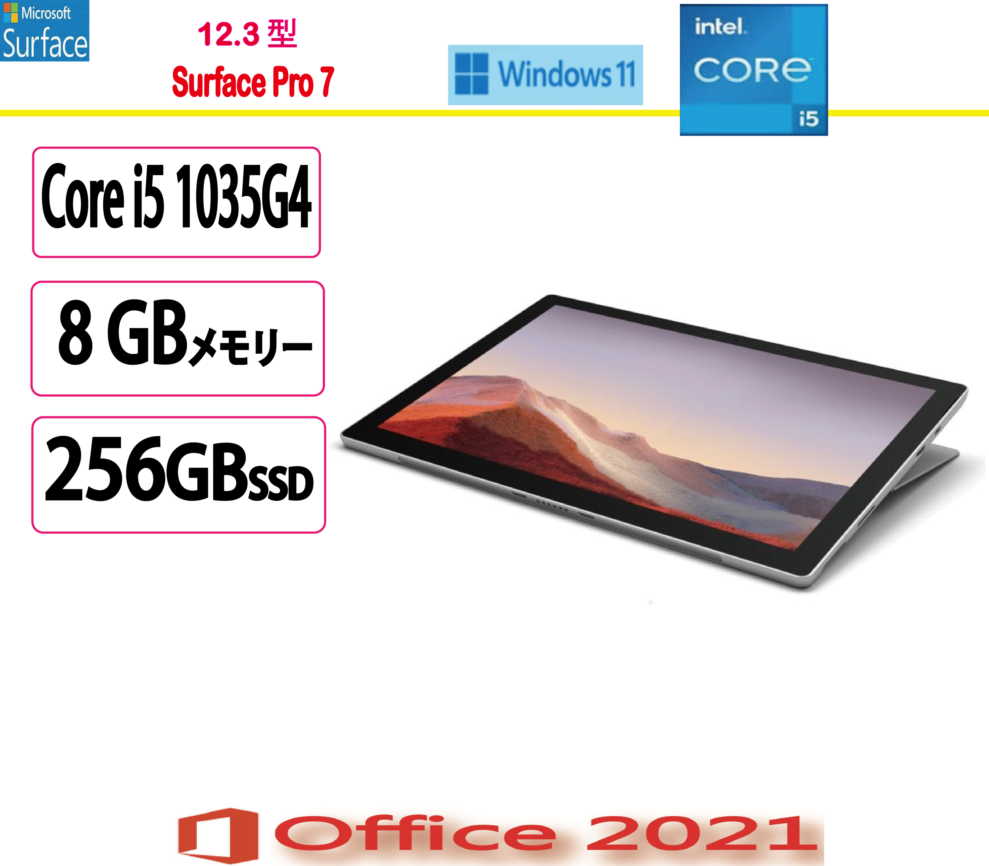 マイクロソフト(Microsoft) ノートパソコン マイクロソフト Surface Pro 7/Core i5/8GB/256GB SSD/12.3インチ/Win 11/MS Office 2021/アウトレット品 傷あり