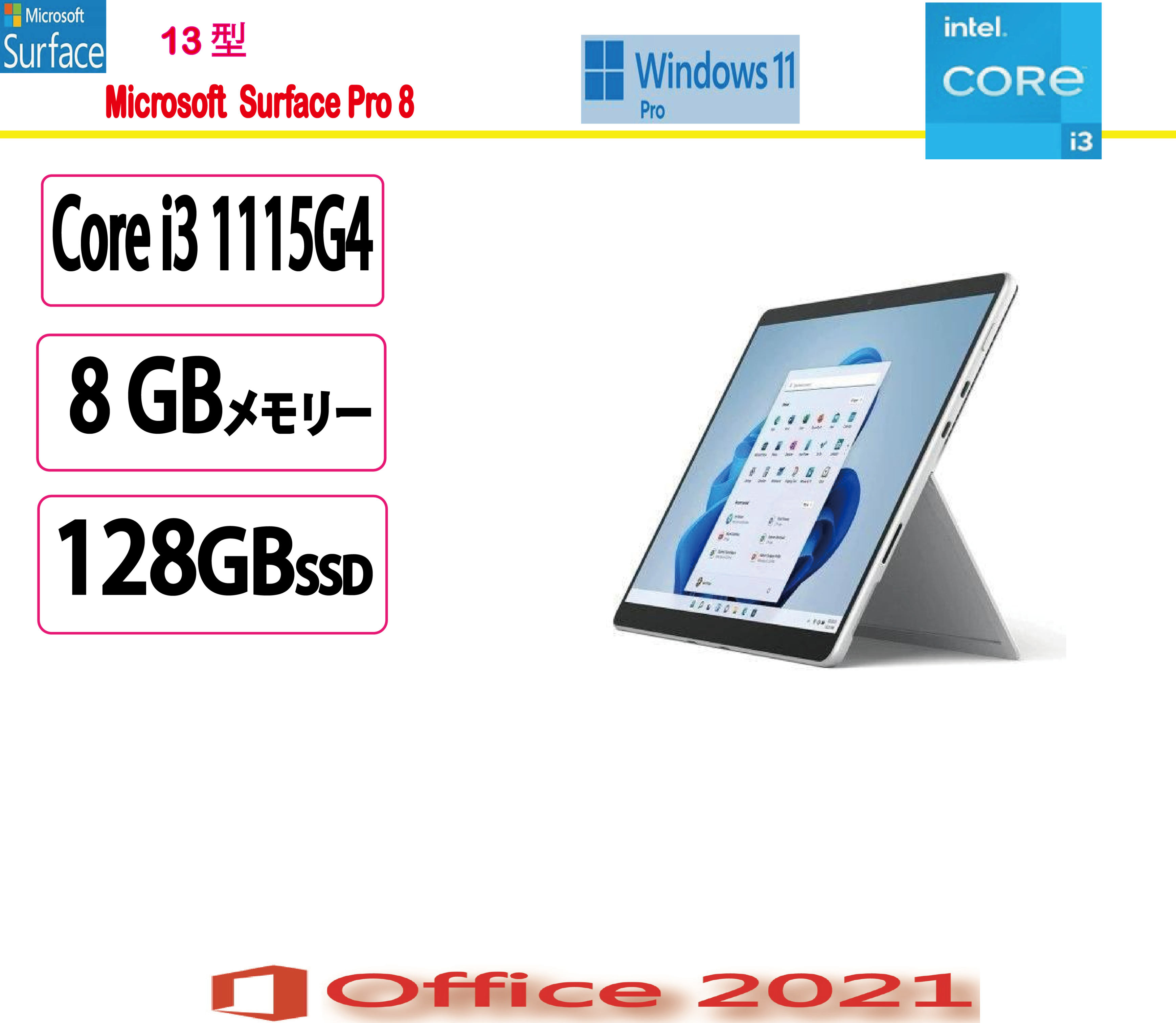マイクロソフト(Microsoft) ノートパソコン マイクロソフト Surface Pro 8 8PM-00024 [プラチナ]/Core i3/128GB/8GB/13.0型/Office 2021/アウトレット品