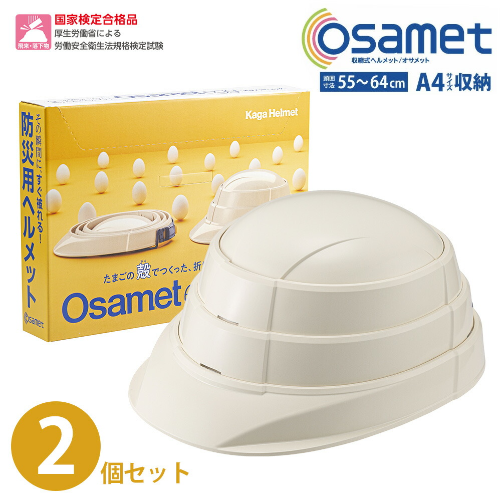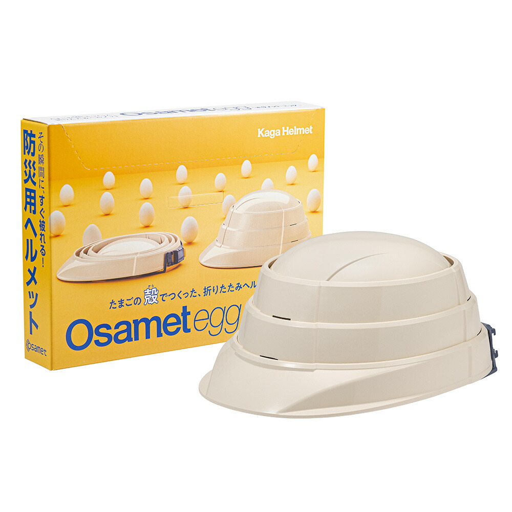 | 商品説明 | 折りたたみヘルメット「オサメット」の良さはそのまま、卵の殻を20%使用した環境にやさしいヘルメットが登場! 地震や台風、ゲリラ豪雨、洪水、火山の噴火などの災害時に備えて必要不可欠な防災ヘルメット。「防災用品はかさばりやすく、場所を取る」そんなお悩みをオサメットが解決します。 A4サイズ薄さ45mm、いろいろな保管が可能な多機能仕様パッケージで場所を取らずに収納可能! ご家庭用はもちろん、店舗、事務所、オフィスなどの災害対策、自治体や病院、マンション管理など共助向けの備蓄などでも省スペースの利点を発揮します。 衝撃吸収も優秀で、国家検定にも合格した高い安全性はもちろん、収納性、携帯性、機能性、機動性を兼ね備えています。 子どもから大人まで簡単に扱えるのが嬉しい防災グッズの必需品。テレビや雑誌にも取り上げられる、今話題の商品です。 |