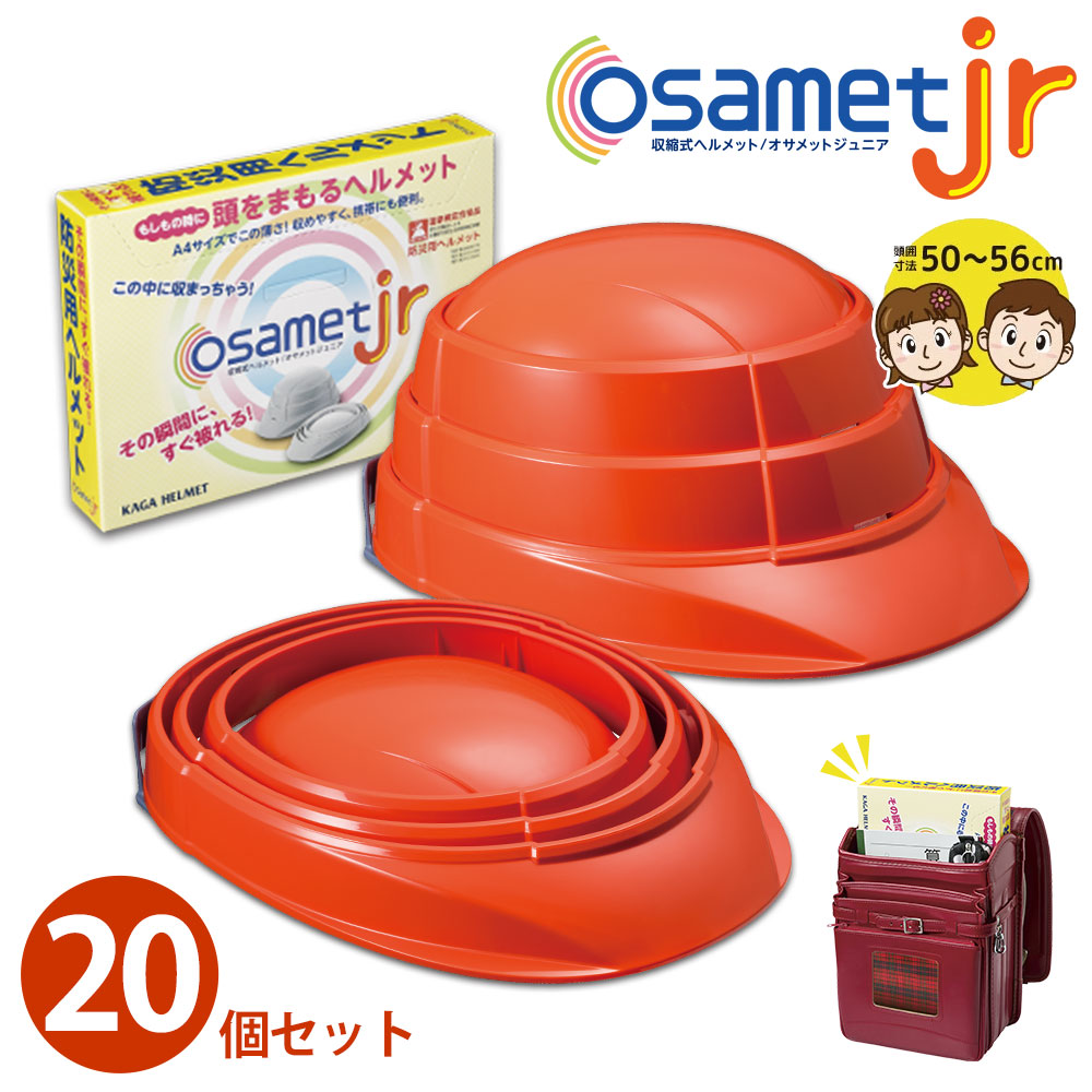 | 商品説明 | グッドデザイン賞2018受賞の国家検定合格品!折り畳み防災用ヘルメット収縮式A4サイズ『オサメット』の未就学児から使える子供用サイズ。 地震や台風、ゲリラ豪雨、洪水、火山の噴火などの災害時に備えて必要不可欠な防災ヘルメット。「防災用品はかさばりやすく、場所を取る」そんなお悩みをオサメットが解決します。 A4サイズ薄さ45mm、いろいろな保管が可能な多機能仕様パッケージで場所を取らずに収納可能!ランドセルやロッカーにも入ります♪ ご家庭用はもちろん、保育園や幼稚園、小学校の災害対策、自治体や病院、マンション管理など共助向けの備蓄などでも省スペースの利点を発揮します。 衝撃吸収も優秀で、国家検定にも合格した高い安全性はもちろん、収納性、携帯性、機能性、機動性を兼ね備えています。 子どもから大人まで簡単に扱えるのが嬉しい防災グッズの必需品。テレビや雑誌にも取り上げられる、今話題の商品です。 |