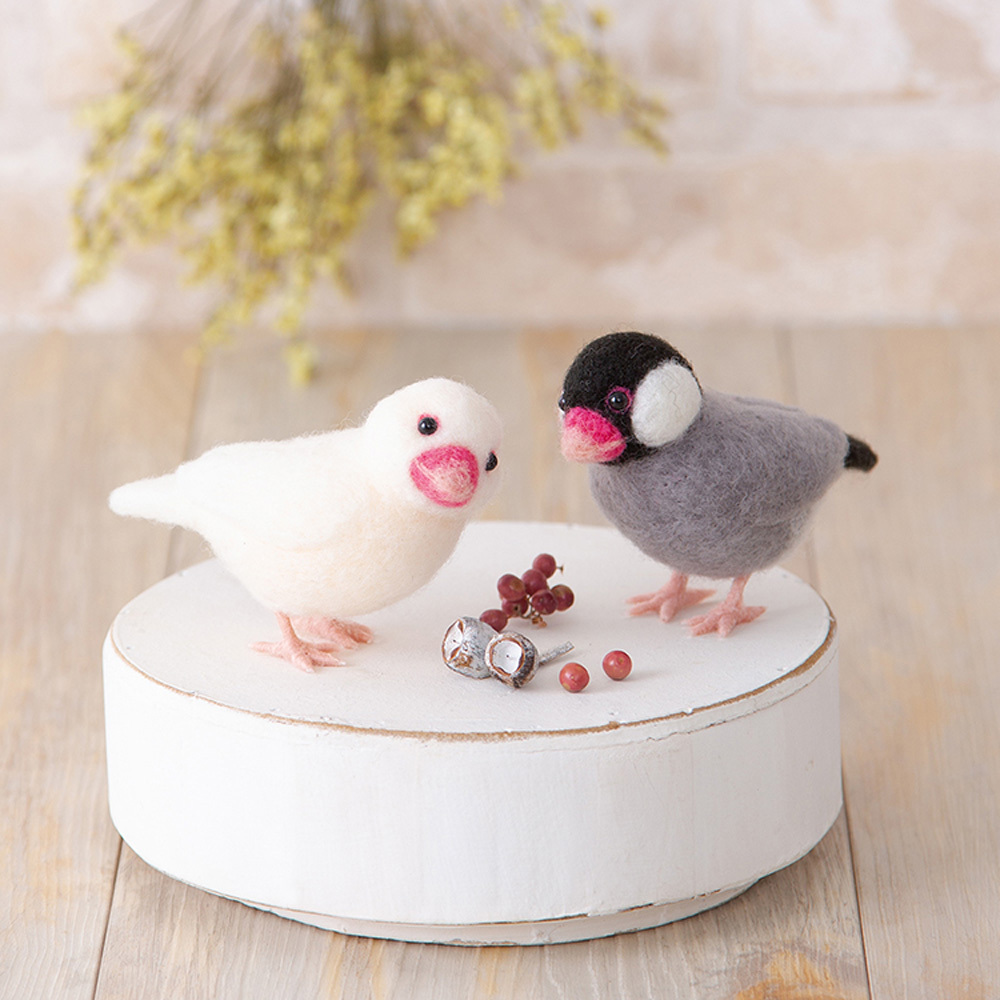 | 別途用意 するもの | ・フェルティング用ニードル極細(h441023) ・フェルティング用マット(h441015) ※またはアクレーヌスターターセット(H441-047) ・はさみ ・目打ち ・手芸用ボンド ・つまようじ ・厚紙 ※上記道具類はキットに含まれません。別途ご用意ください。 |