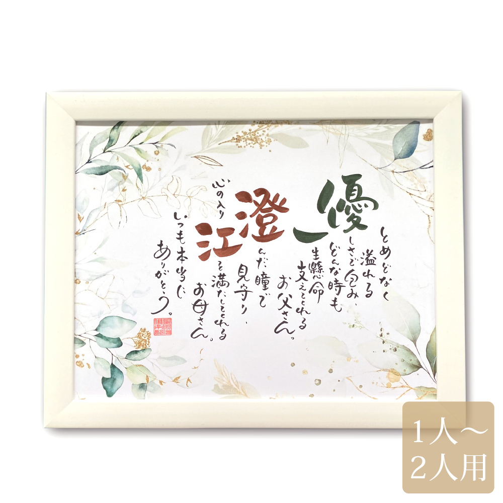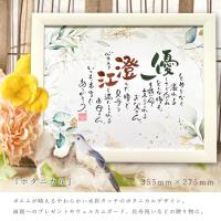 | 商品説明 | ポエムが映えるやわらかい水彩タッチのボタニカルデザイン。フレームカラーはブラウン。結婚式の両親へのプレゼント、ウェルカムボードはもちろん、命名、出産祝い、お子様誕生の記念、父の日、母の日のプレゼント、退職祝い、還暦・古希・米寿・白寿など長寿のお祝いや、お世話になった方へのお礼など、様々なギフトにご利用いただけます。 ネームインポエムとは、そのフレーズ通り、名前を織り込んで作るポエムのことです。専属の作家がお名前と用途から作詩して丁寧に綴るポエムは、想いの伝わる、世界に一つだけの作品となります。 |